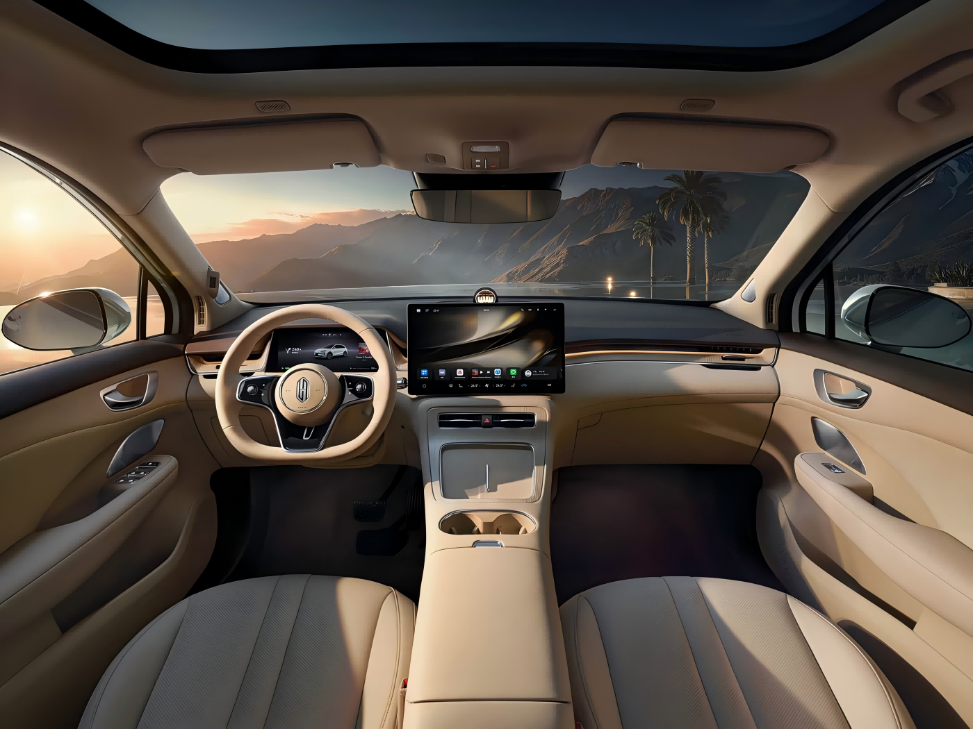 Oficial, o imagine oficială a interiorului în culoarea caisului Shaohua a fost, de asemenea, lansată simultan. Este asortat cu un volan cu trei raze cu funcții multifuncționale, difuzorul iconic al inelului stele al familiei de mobilitate Intelligent Harmony, un ecran de control central plutitor și un panou de instrumente LCD complet, care este de așteptat să ofere o experiență inteligentă excelentă. Între timp, partea din spate a scaunelor din față ar trebui să fie echipată cu interfețe Huawei Maglink, permițând extinderea dispozitivelor din scaunul din spate prin intermediul parantezelor magnetice. În plus, pe baza cabinei Harmony, se poate realiza legătura interactivă pe mai multe ecrane.